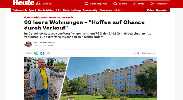 أعلن مجلس بلدية فيينا الجديدة عن قرار بيع 75% من المساكن البلدية البالغ عددها 2192 وحدة سكنية، في خطوة أثارت جدلًا واسعًا بين الأحزاب السياسية والخبراء. وسيبقى 610 شقة فقط في ملكية المدينة.