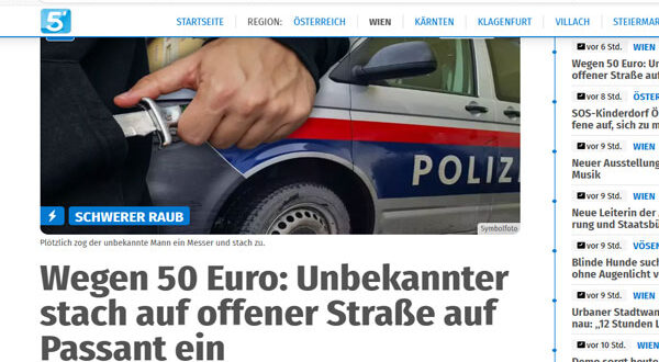 شهدت منطقة كيبلر بلاتس (Keplerplatz) في العاصمة النمساوية فيينا مساء الخميس، 9 أكتوبر، حادثة طعن مروّعة، حيث أُصيب أحد المارة بجروح بعد أن تعرّض لهجوم بسكين على يد شاب مجهول، سرق منه 50 يورو فقط قبل أن يلوذ بالفرار.