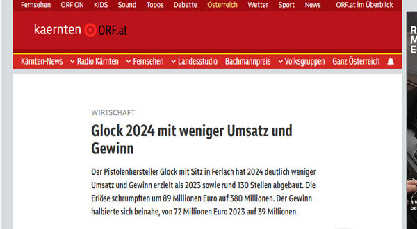 وفقاً لتقريرها السنوي المنشور في السجل التجاري النمساوي يوم الخميس، انخفضت إيرادات شركة “غلوك” بمقدار 89 مليون يورو لتصل إلى 380 مليون يورو، بينما تراجع صافي الأرباح من 72 مليوناً إلى 39 مليون يورو فقط – أي ما يقارب النصف مقارنة بعام 2023.