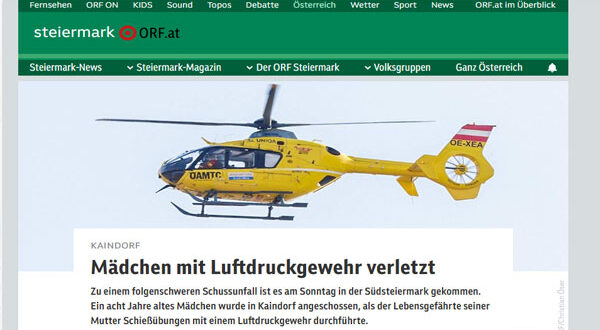 شهدت منطقة كايندورف في جنوب ولاية ستيريا النمساوية حادثًا مؤلمًا مساء الأحد، حين أصيبت طفلة تبلغ من العمر ثماني سنوات بطلق ناري من بندقية هوائية كان يستخدمها شريك والدتها في تدريبات على الرماية خلف المنزل.