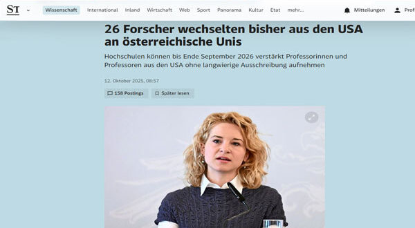 الوزيرة هولتسلايتنر وصفت النتائج بأنها “إشارة واضحة إلى أن أوروبا، والنمسا تحديداً، أصبحت ملاذاً للبحث الحر في وقت تتزايد فيه التدخلات السياسية في الجامعات الأمريكية”.