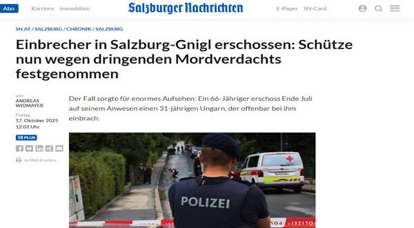 فقد أعلنت النيابة العامة في سالزبورغ، يوم الجمعة، عن توقيف رجل يبلغ من العمر 66 عامًا بعدما تبين أن اللقطات التي أطلقها على أحد اللصوص لم تكن في إطار الدفاع عن النفس، كما كان يُعتقد في البداية.