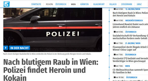 انتهى حادث سطو دموي في منطقة مايدلينغ بالعاصمة النمساوية فيينا باكتشاف كمية كبيرة من المخدرات داخل شقة سكنية، في واقعة درامية كشفتها الشرطة بعد منتصف الليل.