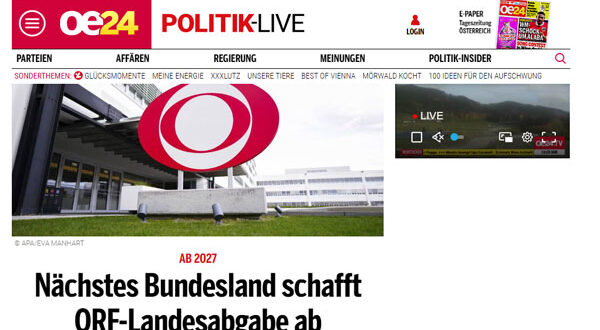 أعلن حاكم ولاية شتايرمارك ماريو كونازِك (عن حزب الحرية النمساوي FPÖ) عن قرار حكومته إلغاء ضريبة ORF الإقليمية اعتبارًا من عام 2027، في خطوة تهدف – بحسب قوله – إلى تخفيف العبء المالي عن سكان الولاية بنحو 30 مليون يورو سنويًا.