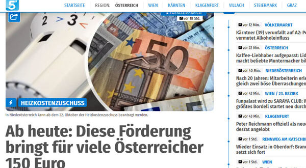 في ظل موجة الغلاء المتواصلة وارتفاع تكاليف المعيشة في النمسا، أعلنت حكومة ولاية النمسا السفلى (Niederösterreich) عن منحة مالية استثنائية لمساعدة الأسر ذات الدخل المحدود على مواجهة تكاليف التدفئة خلال فصل الشتاء المقبل.