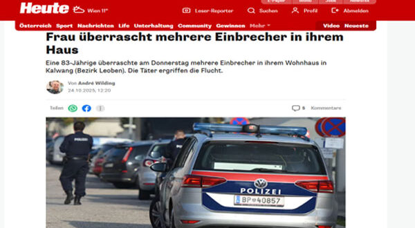 شهدت بلدة كالوانغ (Kalwang) النمساوية صباح الخميس واقعة مثيرة، حينما فوجئت سيدة تبلغ من العمر 83 عامًا بعدد من اللصوص داخل منزلها، بعد أن تمكنوا من اقتحامه وسرقة مبالغ مالية ومجوهرات، قبل أن يفرّوا إلى جهة مجهولة.