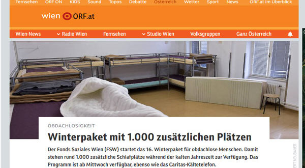 أطلق صندوق الشؤون الاجتماعية في فيينا (FSW) الحزمة الشتوية السادسة عشر لدعم المشردين، لتوفير نحو 1,000 سرير إضافي خلال فصل الشتاء، بالتزامن مع تشغيل خط الطوارئ الكاثوليكي للكشف عن الأشخاص المشردين في البرد.