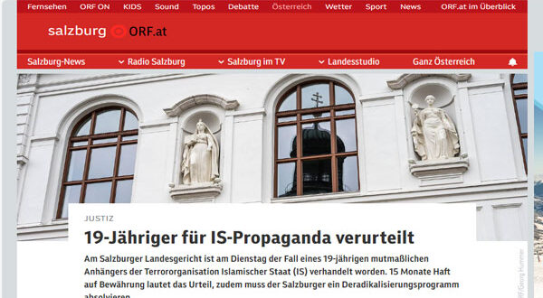 أصدرت محكمة سالزبورغ الإقليمية يوم الثلاثاء حكمها على شاب نمساوي يبلغ من العمر 19 عامًا يُشتبه في انتمائه لتنظيم داعش، بالسجن 15 شهرًا مع وقف التنفيذ، إضافة إلى إلزامه بالالتحاق ببرنامج لإعادة التأهيل ومكافحة التطرف.