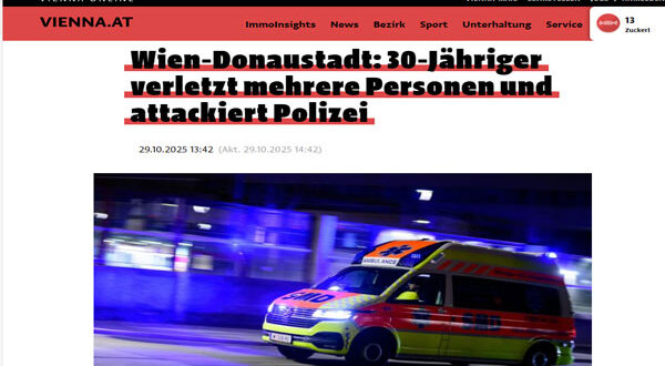 ألقت الشرطة النمساوية القبض على رجل يبلغ من العمر 30 عامًا في منطقة دوناوشتات بفيينا، بعد أن هاجم عدة أشخاص داخل شقة واعتدى على رجال الشرطة، ما استدعى تدخل وحدة العمليات الخاصة WEGA لضمان سلامة الضحايا.