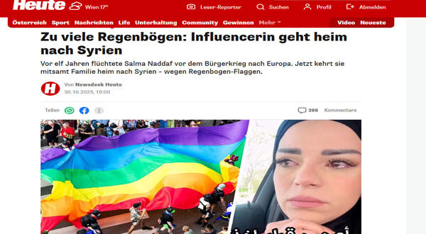 بعد أن قضت أكثر من عقد في أوروبا هربًا من الحرب الأهلية في سوريا، قررت المؤثرة العربية الشهيرة سلمى نضّاف العودة إلى بلدها مع زوجها وأطفالها، معلنة أن سبب رحيلها النهائي من الدنمارك هو انتشار أعلام قوس قزح في مدارس أطفالها.
