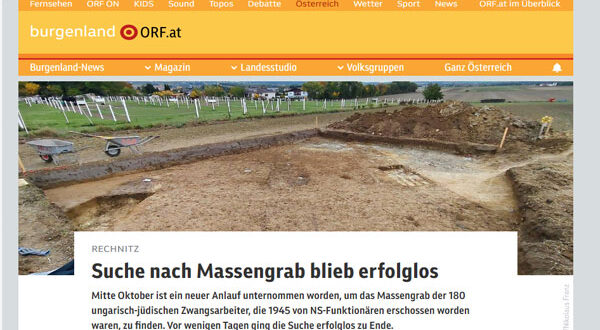في خطوة جديدة ضمن مسار بحثٍ تاريخي طويل ومؤلم، انتهت أحدث محاولة للعثور على المقبرة الجماعية التي دُفن فيها نحو 180 عاملًا قسريًا يهوديًا-مجريًا في بلدة Rechnitz شرق النمسا، دون نتائج تُذكر. فبعد أعمال استمرت قرابة أسبوعين بين 15 و30 أكتوبر، أعلنت ولاية بورغنلاند أن الحفريات، الممتدة على مساحة نحو 200 متر مربع في منطقة Kreuzstadel، لم تُسفر عن العثور على أي بقايا بشرية.