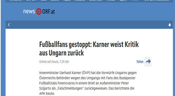 ردّ وزير الداخلية النمساوي غيرهارد كارنر (Gerhard Karner)، المنتمي إلى حزب الشعب (ÖVP)، بشدة على الانتقادات الصادرة من المجر بشأن إيقاف قطار يقل مشجعي نادي Ferencváros لكرة القدم، واصفًا تلك الاتهامات بأنها “أخبار كاذبة” (Falschmeldungen)، وفق ما أوردته وكالة الأنباء النمساوية (APA) اليوم.
