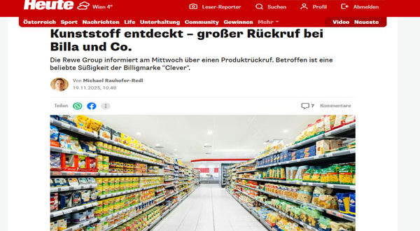 أعلنت مجموعة ريڤه عن سحبٍ فوري وواسع لمنتج CLEVER Punsch Krapfen mit Rumgeschmack بعبوته المكوّنة من ست قطع (250 غرامًا)، وذلك للدفعة التي تحمل تاريخ الصلاحية 04.12.2025 ورقم التشغيلة L 0235، بعد العثور على شظايا بلاستيكية داخل بعض العبوات، في خطوة وُصفت بأنها إجراء احترازي لحماية المستهلك.