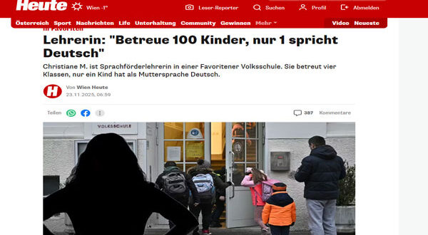 ووفق صحيفة هويته، فإن بيانات هيئة الاندماج النمساوية (ÖIF) تظهر أن 51.6٪ من أطفال المدارس في فيينا لا يتحدثون الألمانية خارج المدرسة، بينما يحمل 35.1٪ من التلاميذ جنسية أجنبية. ورغم انخفاض بسيط في عدد من يصنفون بـ”ضعفاء اللغة” بنسبة 3.3٪، بقي الوضع شبه ثابت في المدارس الابتدائية بـ 15,650 تلميذًا يعانون من نقص كبير في المهارات اللغوية.