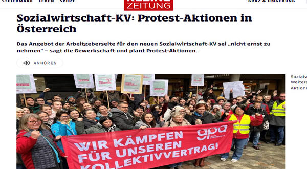 تشهد النمسا توترًا اجتماعيًا متصاعدًا في قطاع العمل الاجتماعي، مع إعلان النقابات العمالية عن سلسلة من الاحتجاجات والفعاليات في فيينا وسالزبورغ، ردًّا على ما وصفته بـ”العرض غير الجاد” من جانب أصحاب العمل بشأن الاتفاقية الجماعية الجديدة في قطاع الخدمات الاجتماعية (Sozialwirtschaft-KV).