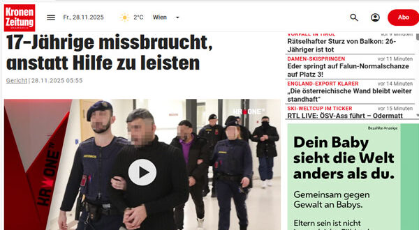 أصدرت محكمة في فيينا حكمًا بالسجن على لاجئ سوري يبلغ من العمر 33 عامًا لمدة أربع سنوات ونصف، بعد إدانته باستغلال فتاة جنسياّ تبلغ من العمر 17 عامًا كانت في حالة تهدد حياتها، بدلاً من تقديم المساعدة لها، وفق ما أفادت به صحيفة Krone النمساوية.