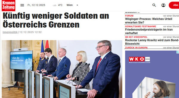 أعلنت الحكومة النمساوية عن إعادة تنظيم شاملة لإدارة الحدود، تستند إلى الانتقال من نظام المراقبة الثابتة على المعابر إلى مفهوم “مراقبة منطقة الحدود”، وهو ما سيؤدي تلقائيًا إلى تقليص عدد الجنود المنتشرين حاليًا على الحدود.