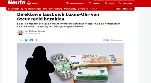 تفجّر داخل اتحاد المساعدات الاجتماعية في النمسا العليا جدل واسع، عقب كشف صحيفة Heute عن حصول مديرة إقليمية في الاتحاد على تعويض مالي قدره 6.000 يورو من ميزانية المؤسسة، مقابل ساعة فاخرة من طراز Breitling ادّعت سرقتها أثناء عملها.
