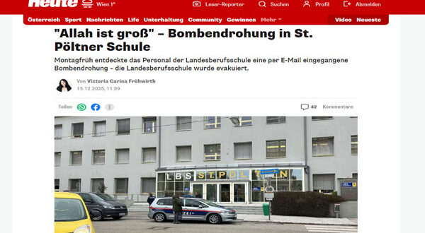 شهدت مدينة سانت بولتن النمساوية، صباح الاثنين، حالة استنفار أمني بعد تلقي مدرسة مهنية حكومية (Landesberufsschule) رسالة تهديد بوجود قنبلة، ما أدى إلى إخلاء فوري للمبنى مع بدء اليوم الدراسي.