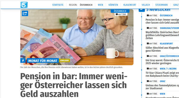 شهرًا بعد شهر، تُحوَّل معاشات التقاعد في النمسا إلى الحسابات المصرفية لملايين المستحقين، في مشهد يعكس التحول المتسارع نحو الدفع الإلكتروني. غير أن قلة من المتقاعدين ما زالت تفضّل استلام المعاش نقدًا، وهي فئة آخذة في التراجع المستمر.