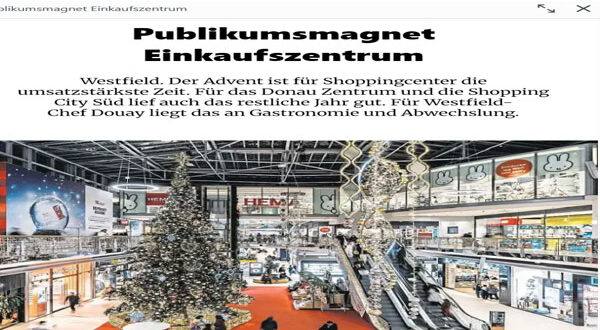 تحوّل موسم الأعياد في فيينا إلى محرك أرباح استثنائي لمراكز التسوق الكبرى، حيث سجّل دوناو تسنتر وShopping City Süd أداءً قويًا خلال فترة عيد الميلاد، مؤكدين أن التسوق التقليدي لا يزال قادرًا على الصمود، بل والتفوّق، في وجه التجارة الإلكترونية.