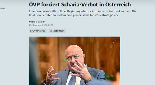 وسط هذه الملفات، تسعى ÖVP إلى فرض أجندتها الأيديولوجية عبر قانون جديد يحظر تطبيق الشريعة الإسلامية في النمسا، حتى في الحالات التي لا تتعارض فيها مع القوانين المحلية. وإذا نجحت في التوصل إلى توافق داخل الائتلاف، تعتزم تقديم مشروع القانون خلال اجتماع يناير.