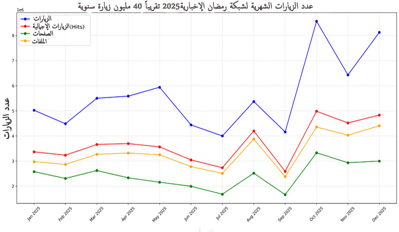 بحسب إحصاءات رسمية موثقة، حققت شبكة رمضان الإخبارية ما يقارب 40 مليون زيارة سنويًا، سواء عبر الدخول المباشر إلى الموقع أو من خلال منصة فيسبوك، وهو رقم يعكس اتساع قاعدة القراء وتنامي الثقة في المحتوى الإخباري الذي تقدمه الشبكة.
