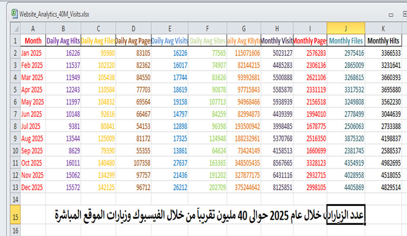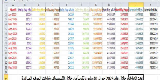 في المقابل، شهدت أشهر الصيف (يونيو – سبتمبر) تراجعًا نسبيًا في متوسط الزيارات اليومية والشهرية، وهو نمط موسمي طبيعي يرتبط بفترات العطلات والسفر، ولا يعكس أي تراجع في مستوى الحضور أو التأثير الإعلامي للموقع.