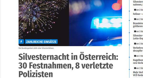 وبحسب البيان الرسمي، شهدت الولايات النمساوية، ولا سيما فيينا وشتايرمارك، مئات التدخلات الأمنية خلال ليلة Silvesternacht، أسفرت عن 30 حالة توقيف، بينها 15 توقيفًا جنائيًا و15 إداريًا، إضافة إلى إصابة 8 من أفراد الشرطة أثناء أداء مهامهم.
