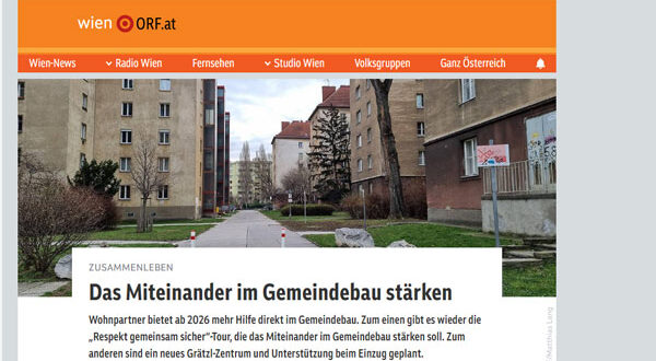 وفي إطار تعزيز السلم المجتمعي، تنطلق في مارس 2026 جولة مبادرة “الاحترام.. معاً بأمان” (Respekt gemeinsam sicher)، وهي مشروع مشترك بين wohnpartner وWiener Wohnen وشرطة الأحياء (Grätzlpolizei). وتهدف الجولات إلى توعية السكان بقواعد العيش المشترك وفتح حوار مباشر حول قضايا مثل الضوضاء، النظافة، والأمن. وكانت جولات الخريف الماضي قد شهدت مشاركة نحو 350 مواطنًا، فيما ستتضمن جولات 2026 فعاليات “احتفالات للنظافة” لتعزيز التفاعل الشعبي.