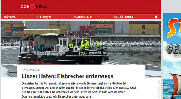 ولهذا السبب، دخلت كاسحة الجليد “MS Eduard” الخدمة ظهر الخميس في ميناء لينتس.
