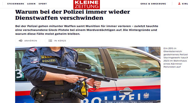 ولا تظهر الأسلحة الشرطية المفقودة في إحصاءات علنية، بل يُكشف عنها فقط عبر استجوابات برلمانية أو عند تحول بعض القضايا الفردية إلى رأي عام. أحدث هذه الحالات كانت في ولاية شتايرمارك، حيث عُثر خلال تفتيش منزل أحد عناصر وحدة النخبة “كوبرا” – المشتبه بتورطه في قتل امرأة نمساوية – على سلاحَي خدمة مفقودين منذ سنوات:
