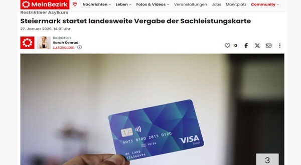 بدأت ولاية شتايرمارك النمساوية رسميًا تطبيق نظام بطاقة المساعدات العينية على مستوى الولاية، في خطوة جديدة ضمن نهج أكثر تشددًا في سياسة اللجوء، وذلك بعد انتهاء المرحلة التجريبية التي استمرت شهرين واعتُبرت – وفق السلطات – «ناجحة».
