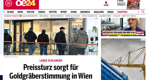 تكدست الصفوف أمام محلات بيع الذهب، لا سيما فرع Gold & Co. في مركز K1 التجاري بمنطقة Kagraner Platz، فيما عبرت الشركة عن ضغط هائل على الخطوط الهاتفية والمبيعات المباشرة، محذرة العملاء من احتمال تأخير الخدمة بسبب الازدحام.