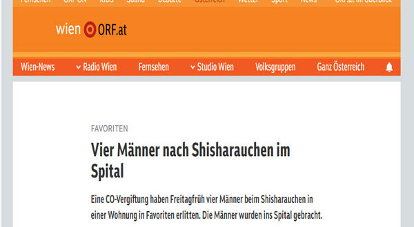 نُقل أربعة رجال إلى المستشفى في ساعة مبكرة من صباح الجمعة، بعد تعرضهم لتسمم بغاز أول أكسيد الكربون أثناء تدخين الشيشة داخل شقة سكنية في حي فافوريتن جنوب العاصمة النمساوية فيينا.