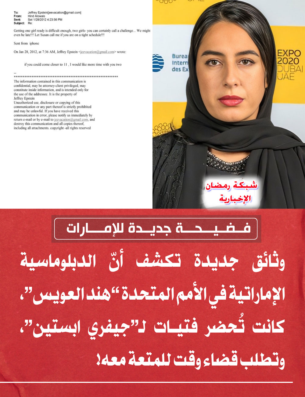 كشفت وثائق حديثة صادرة عن وزارة العدل الأمريكية عن تفاصيل علاقة متشابكة جمعت بين الملياردير الراحل جيفري إبستين والدبلوماسية الإماراتية هند العويس، التي شغلت مناصب رفيعة في الأمم المتحدة ووزارة الخارجية الإماراتية.
