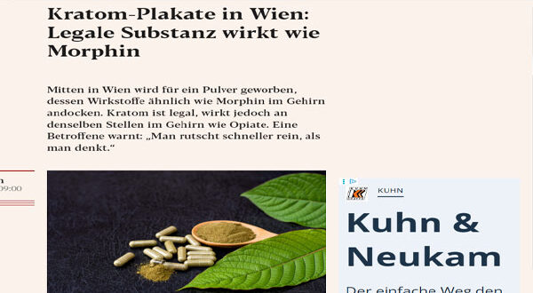 في مشهد يثير الجدل داخل الأوساط الصحية والقانونية، انتشرت في شوارع فيينا لوحات إعلانية تروّج لمادة نفسية التأثير تُعرف باسم “كراتوم” — وهي مادة قانونية في النمسا، لكنها تعمل داخل الدماغ بطريقة مشابهة للمواد الأفيونية مثل المورفين.