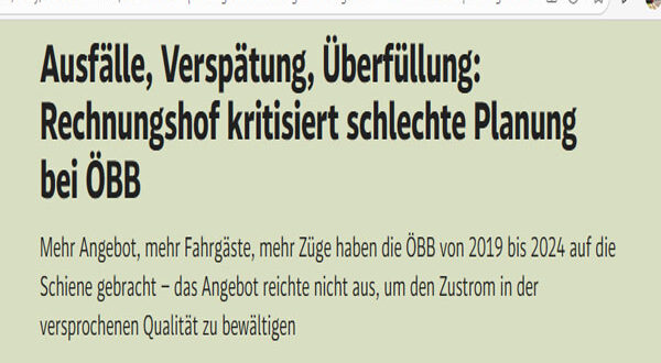 لطالما قُدِّمت النمسا في أوروبا، وخاصة في ألمانيا، كنموذج ناجح يُحتذى به في إدارة النقل بالسكك الحديدية. لكن ما بين الصورة المثالية والانطباعات اليومية للركاب، تكشف الوقائع فجوة آخذة في الاتساع. فالمسافرون المنتظمون في القطارات داخل البلاد باتوا يواجهون بشكل متكرر تأخيرات مفاجئة، وإلغاءات في اللحظات الأخيرة، وازدحامًا يضعف جودة الرحلة. اليوم، لم تعد هذه الشكاوى مجرد انطباعات شخصية، بل وجدت تأكيدًا رسميًا في تقرير حديث صادر عن Rechnungshof، الذي دق ناقوس الخطر بشأن طريقة التخطيط في خدمات نقل الركاب لدى ÖBB.