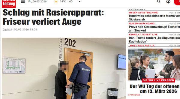 تشهد محكمة Landesgericht Wien في العاصمة النمساوية فيينا محاكمة رجل يبلغ من العمر 29 عامًا يحمل الجنسية التركية، وذلك بعد اتهامه بالتسبب بإصابات جسدية خطيرة لشريكه السابق في العمل داخل صالون حلاقة، في حادثة صادمة انتهت بفقدان الضحية إحدى عينيه بشكل كامل.