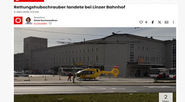 شهدت مدينة Linz صباح اليوم حالة استنفار طبية وأمنية لافتة، بعد وقوع حادث عمل خطير في وسط المدينة استدعى تدخل فرق الإنقاذ بشكل عاجل وهبوط مروحية إسعاف قرب محطة القطارات الرئيسية.