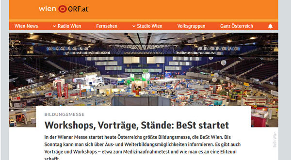 انطلقت اليوم في العاصمة النمساوية فيينا فعاليات أكبر معرض تعليمي في البلاد، حيث افتتحت النسخة الجديدة من معرض BeSt Vienna أبوابها أمام آلاف الطلاب والمهتمين بالتعليم والتدريب المهني، في مركز Messe Wien Exhibition & Congress Center، وتستمر الفعاليات حتى يوم الأحد المقبل.
