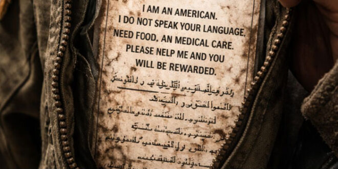 “أنا أمريكي ولا أتحدث لغتكم، لن أؤذيكم.. أرجوكم زودوني بالطعام والمأوى والطبيب، وساعدوني للوصول إلى القوات الصديقة”.