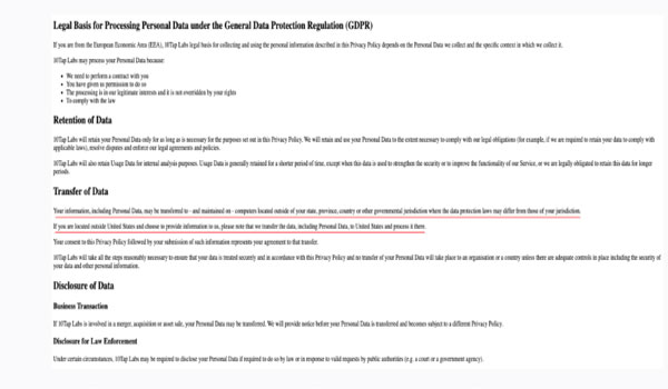 وتتضمن السياسة بنداً يُفيد بأن بيانات المستخدمين، بما فيها البيانات الشخصية، قد تُنقل إلى الولايات المتحدة وتُعالَج هناك، مع الإشارة إلى أن موافقة المستخدم على السياسة تُعدّ موافقةً تلقائية على هذا النقل.