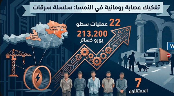 نجحت الأجهزة الأمنية في النمسا السفلى في تفكيك عصابة إجرامية منظمة مكونة من سبعة أشخاص يحملون الجنسية الرومانية، بعد تورطهم في تنفيذ سلسلة من السرقات الممنهجة استهدفت مواقع إنشائية وشركات صناعية في عدة ولايات نمساوية، متسببين بخسائر مالية تجاوزت 210 آلاف يورو.