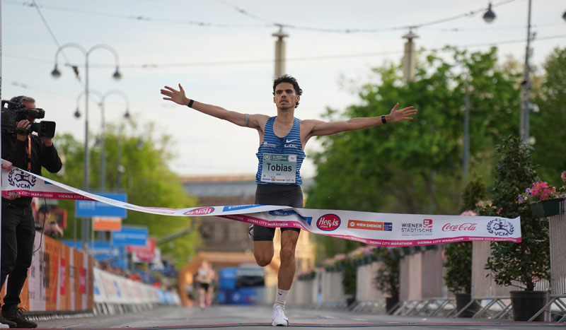 نجح العداء الكيني الشاب فاني كيبروتيتش (24 عامًا) في الفوز بالنسخة الـ43 من ماراثون فيينا، بعدما قطع مسافة 42.195 كيلومترًا بزمن بلغ 2:06:54 ساعة، متقدمًا بفارق واضح عن أقرب منافسيه بعد انطلاق منفرد في الكيلومترات الأخيرة.