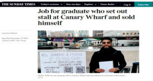 لجأ شاب يبحث عن عمل إلى عرض مواهبه وشخصيته بطريقة أكثر جرأة وإبداعاً، حيث نصب لوحة عرض متنقلة أمام محطة مترو كناري وارف بالعاصمة البريطانية لندن، وذلك في ظل عجزه عن العثور على وظيفة منذ بداية جائحة كورونا، طبقاً لما أوردته صحيفة The Times البريطانية، السبت 27 نوفمبر/تشرين الثاني 2021. حيث وصل الشاب حيدر مالك (24 عاماً)، الذي درس العلوم المالية والمصرفية …