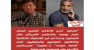 “قائمة سوداء إسرائيلية تُثير الجدل عالميًا.. باسم يوسف وتاكر كارلسون في مرمى الاتهام بسبب مواقفهم من غزة”