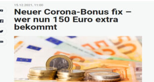 اتفقت الأحزاب الحاكمة في النمسا على مكافأة كورونا جديدة. 150 يورو تدفع لمرة واحدة للمتضررين مادياّ في العمل بسبب فيروس كورونا ، وأيضاّ للتعويض عن التضخم في ضوء زيادة معدل التضخم في الأشهر الأخيرة ، وكدعم لتكاليف التدفئة في العام القادم 2021/2022 وكشكر على الأداء الاستثنائي في الوباء ، يحصل عليها المتقاعدين والطلاب الحاصلين على منحة دراسية أو بدل دراسة …