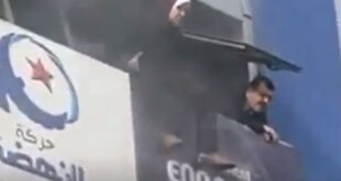 أظهرت مقاطع مصورة التقطها هواةٌ لحظة اشتعال النيران في مقر حزب النهضة التونسي المركزي بالعاصمة، الخميس 9 ديسمبر/كانون الأول 2021، لقطات مروعة لإلقاء رئيس وزراء تونس الأسبق، علي العريض، بنفسه من الطابق الثاني بالمقر؛ هرباً من النيران التي اشتدت في المبنى. ووثقت الصور التي انتشرت بشكل واسع على مواقع التواصل الاجتماعي، لحظة خروج العريض من نافذة بالطابق الثاني إلى جانب …