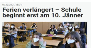 نشرت الصحف النمساوية اليوم الخميس ، أن وزارة التعليم النمساوية أعلنت تأجيل افتتاح المدارس التابعة لها لبعد أجازة أعياد الميلاد إلى العاشر من يناير المقبل 2022 ، بدلاّ من 7 يناير ، وذلك من أجل تبسيط الاختبارات على الطلاب ، ومن أجل بيئة تعليمية صحية للجميع للنظام التعليمي. مع الألتزام بالإجراءات المعمول بها حالياً في قطاع المدارس مستمرة حتى عطلة …